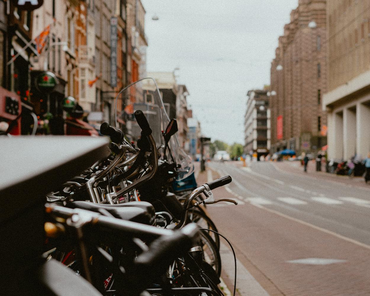 The unmatched bicycle infrastructure of Amsterdam creates a calm, almost serene, street. Captured here is a packed bicycle parking area in the heart of the city. note: this photo is edited to appear as if shot on film, but was taken digitally